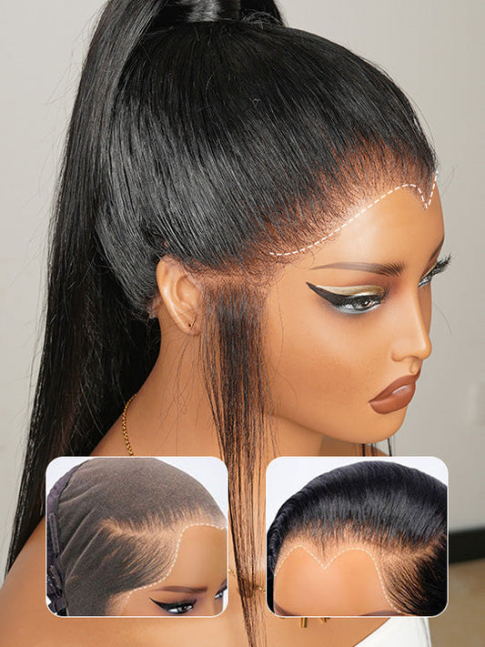 Pre Everything 360 Lace Frontal Ponytail Wig Widows Peak Hairline Yaki Straight Glueless Lace Wig Kisslove Hair