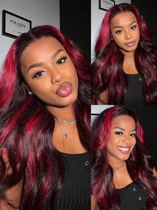 Burgundy With Red Highlights 3D Body Wave 5x5 13x4 13x6 Lace Frontal Human Hair Wigs